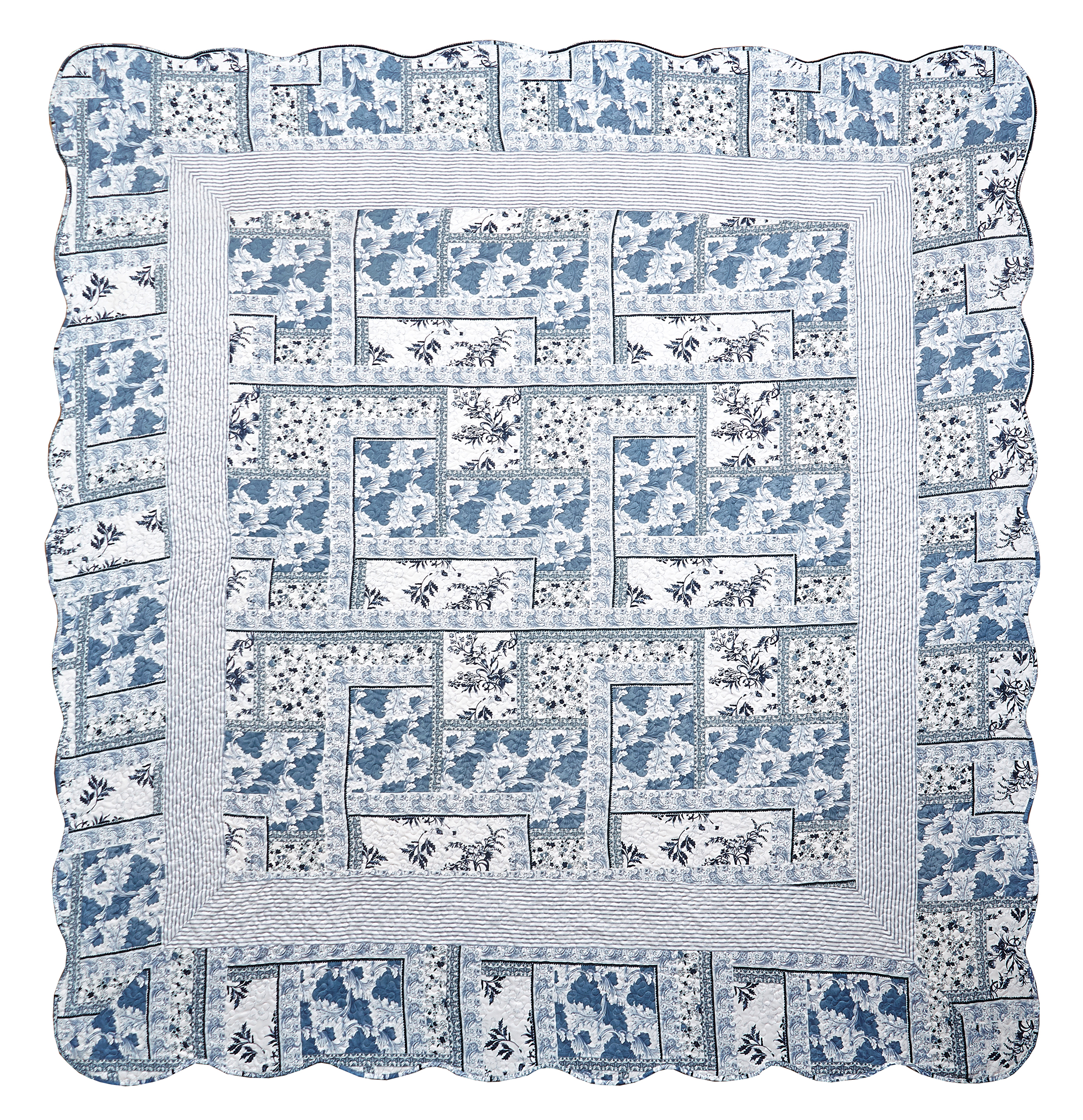 Faience Blues 3 piece set,super queen-92"w x 96"l, 2-standard pillow shams