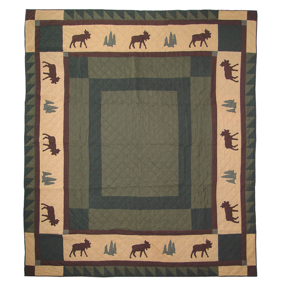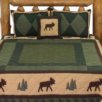 Feel as if you watching the moose roam the woods with this forest green light quilt. Enhanced with beige and chocolate browns with moose and every greens. 100% cotton shell and hand layered organic cotton fill. Hand quilted and hand layered organic cotton fill. Hand quilted and hand layered for unique soft touch and warmth.